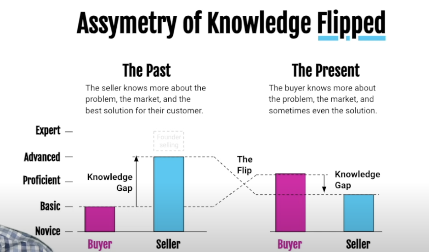He talks about how the buyer now knows more about the problem, the market and sometimes the solution