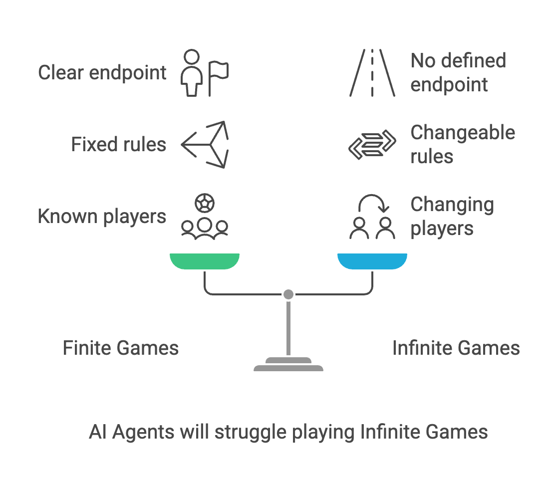 But data is not the only reason Autonomous AI Agents in Business are going to take time. Business is an Infinite Game and players keep changing, rules keep changing and there is no defined endpoint - All of this will make it a struggle for an autonomous agent that needs clear goals, clear directions etc.