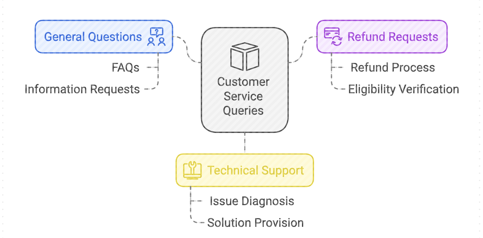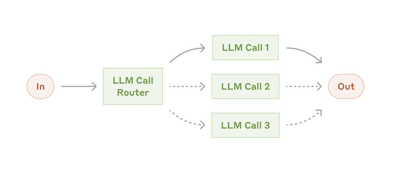 In plain english, when a request to do some work comes in, there is a 'router' that classifies what the work is and then routes to the right LLM or Tool to do the work. Here is an example of how this looks like for Customer Services queries.