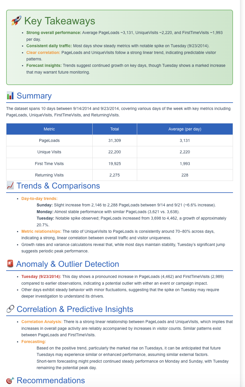 Here is an output that I get when analyzing website visitors (uploaded as CSV).
