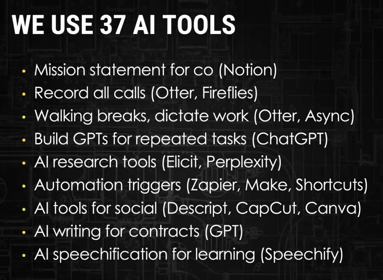 Allie's session was "How to use AI to 10x your productivity." and she shared how her team uses 37 different tools for various tasks.