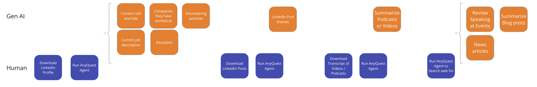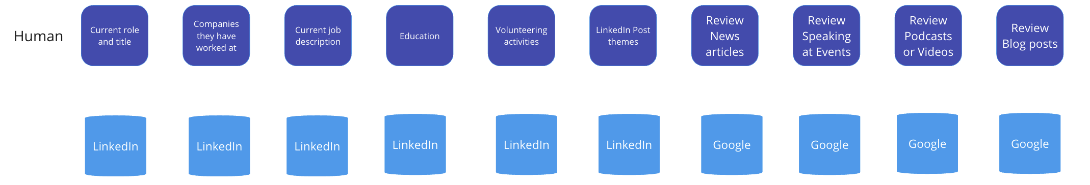 After these 2 sessions, I got inspired to create my own tool and I picked an area that I spend quite some time doing manual work. I speak to a lot of founders and executives and before every meeting, I do research about them and this currently is a manual process and it takes me anywhere from 15 mins to an hour (if they have podcasts / blogs etc.).