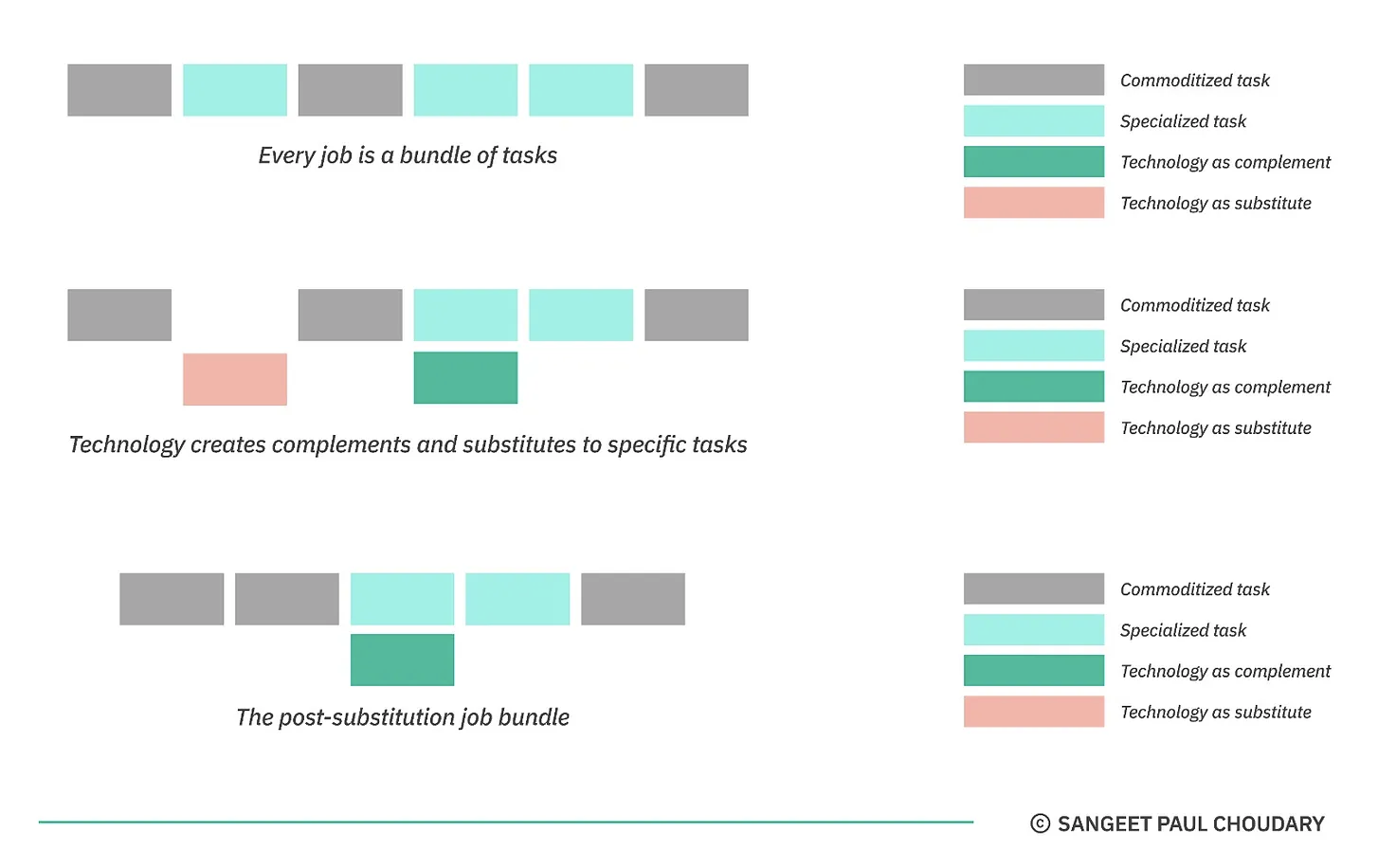 I took some inspiration from Sangeet Paul Choudary and his post on bundling and unbundling of tasks for my visual above.