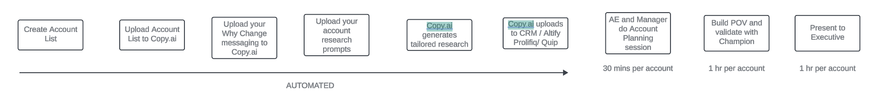 So to all my friends in Enablement - Nick Saunders Nate Vogel Danny Wasserman, all you need to do is use Copy.ai and it could upload all the account research you need into Salesforce and you don't have to be after the AEs to update their account plan. Imagine the process below -