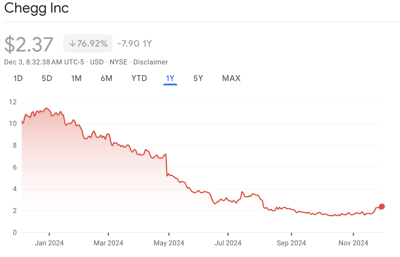 In July 2023, the company’s CEO admitted at a Fortune conference that Chegg had seemingly become a “poster child for getting your ass kicked in the public markets by AI.”