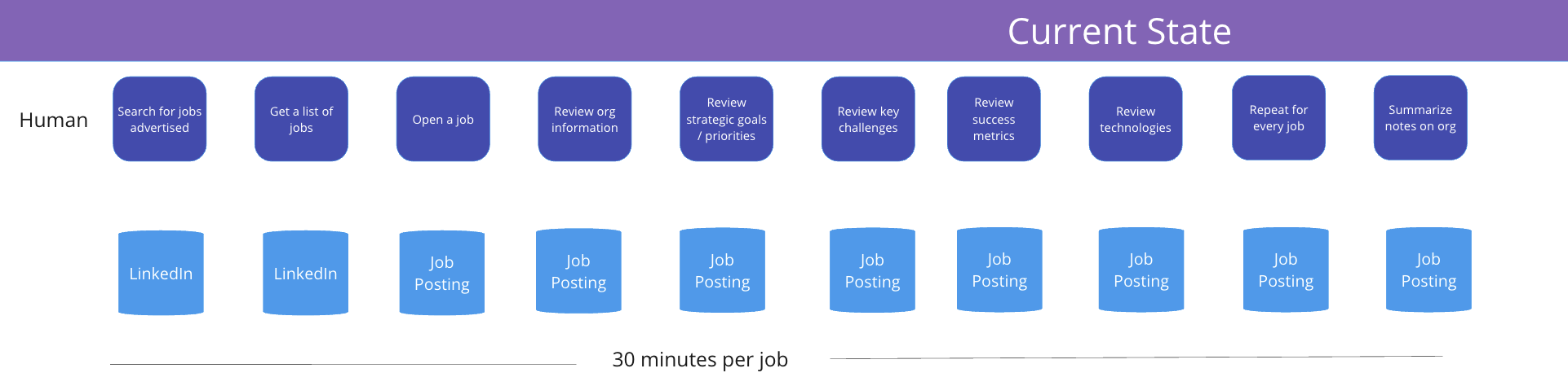 Here is some simple math - 60 jobs x 30 mins per job = 30 hours.